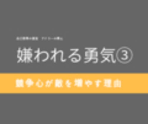 どうもこんにちは。 タクミです。 第2話に引き続き 『嫌われる勇気』 の内容を分かりやすくまとめていきます。 【嫌われる勇気(自己啓発の源流「アドラー」の教え)】 嫌われる勇気―――自己啓発の源流「アドラー」の教え posted with ヨメレバ 岸見 一郎,古…